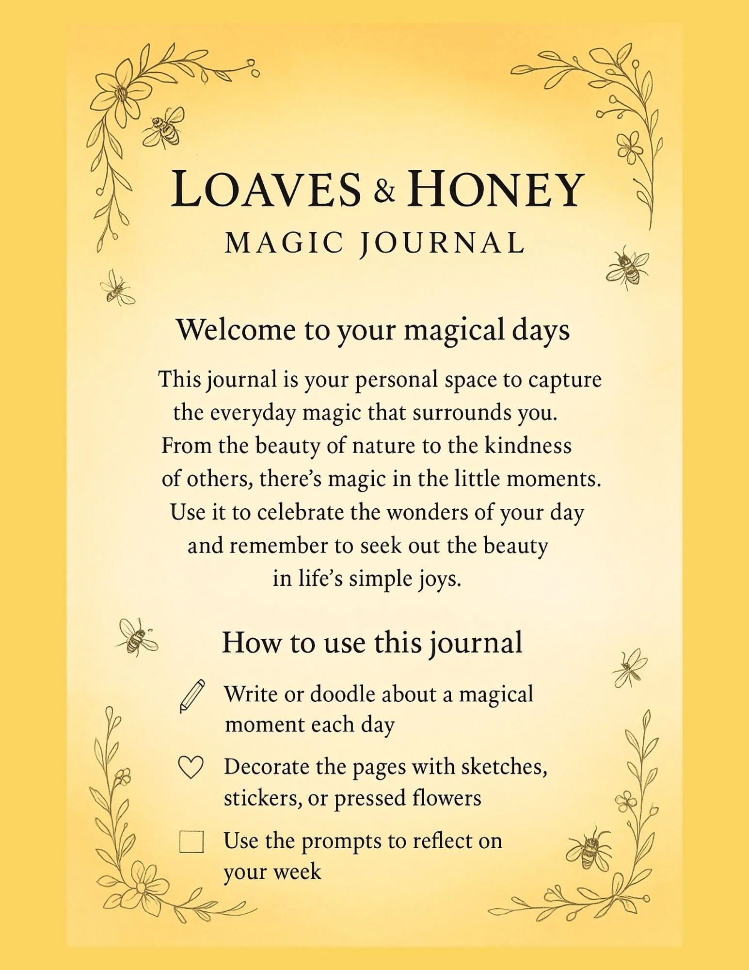 My life has always felt very magical full of signs and messages from the universe that help guide my way. I felt inspired to create my very own Magic Journal to have a space to capture all the magical moments in everyday life. This 60-day journal is full of prompts, affirmations, recipes and rituals that are beautifully illustrated to connect to nature, spirit and self. I hope you enjoy this very special and unique Magic Journal! Download and print.